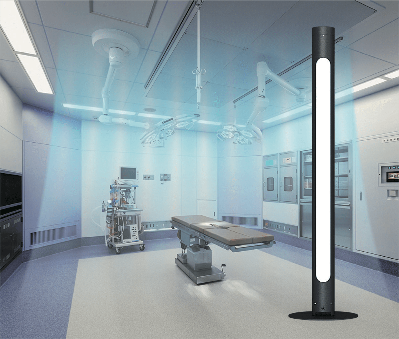 無菌手術室と同じ流層プロセスを応用。空間内にちりや埃を舞い上げずに静かに確実に空間を洗浄します。LED光源を採用しており、省エネ性能に優れ、50,000時間以上の長寿命を実現しています。