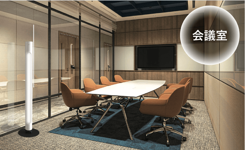 特許取得済の抗菌LEDライトが「光触媒」を活性化、「銀イオン」と「銅イオン」の二重のパワーを空間全体に広げることで、有害な細菌やウイルス、臭いの原因物質、カビ、花粉を除去します。