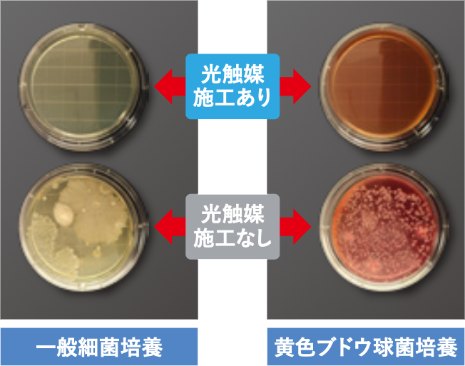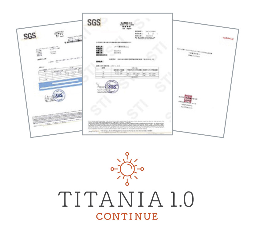 NASAで認められた光触媒チタニア1.0を採用。この光触媒は菌やウイルスの無力化に最適な濃度(一般的に光触媒と言われているものよりはるかに高濃度)で、独自の技術と製法で粒子が細かく(水溶性酸化チタン)、より確実に菌やウイルスを無力化し、密着性が高く長期間の効果持続に成功した製品です。