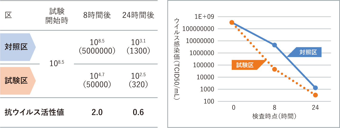 インフルエンザウィルスの不活性化試験でも効果を得られています。